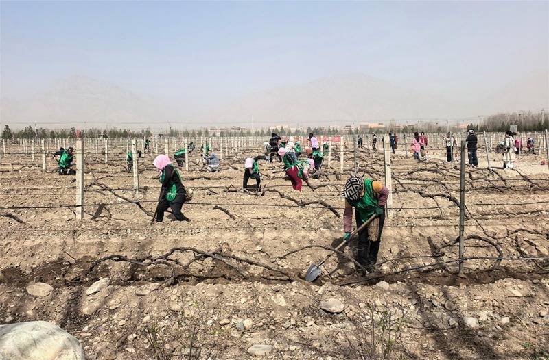 作为本次活动核心环节,田间展藤劳动技能竞赛备受瞩目。参赛选手在农艺师指导下,分组进行出土、上架操作,角逐“最快出土奖”与“最标准上架奖”。沃尔丰酒庄负责人介绍,金山产区地处贺兰山下,气温相对较低,展藤时间较宁夏其他产区滞后1—2周,通常在3月下旬至4月初。这种“晚醒”策略结合引黄灌溉技术,可有效调节地温、延迟萌芽,帮助葡萄藤避开“倒春寒”霜冻,是保障葡萄品质的关键农技措施。